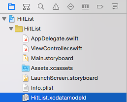 Since you’ve elected to use Core Data, Xcode automatically created a Data Model file for you and named it HitList.xcdatamodeld.