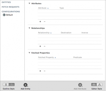 The Data Model editor has a lot of features, but for now, let’s focus on creating a single Core Data entity.