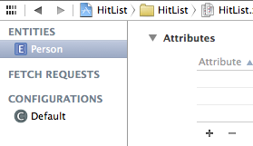 Open HitList.xcdatamodeld. As you can see, Xcode has a powerful Data Model editor: