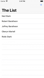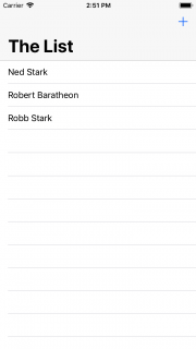 Great! They’re back from the dead (pun intended). Add a few more names to the list and restart the app to verify saving and fetching are working. Short of deleting the app, resetting the Simulator or throwing your phone off a tall building, the names will appear in the table view no matter what.