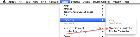 Click on Main.storyboard to open it in Interface Builder. Select the view controller on the canvas and embed it inside a navigation controller. From Xcode’s Editor menu, select Embed In…\ Navigation Controller.