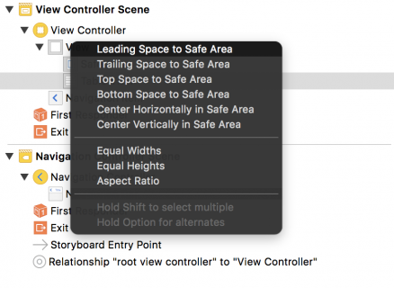 Do this three more times, selecting the constraints Trailing Space to Safe Area, Top Space to Safe Area and finally, Bottom Space to Safe Area. Adding those four constraints makes the table view fill its parent view.
