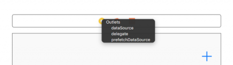 But first, you need to make the view controller the table view’s data source. In the canvas, Ctrl-drag from the table view to the yellow view controller icon above the navigation bar, as shown below, and click on dataSource: